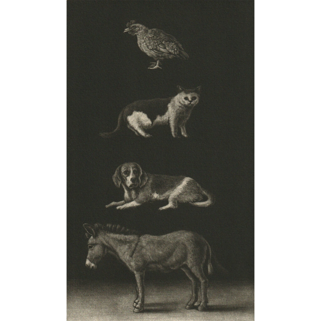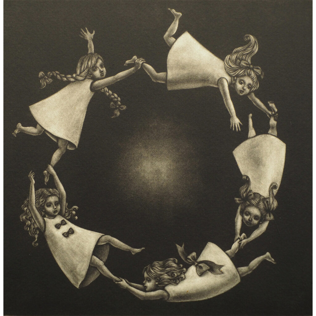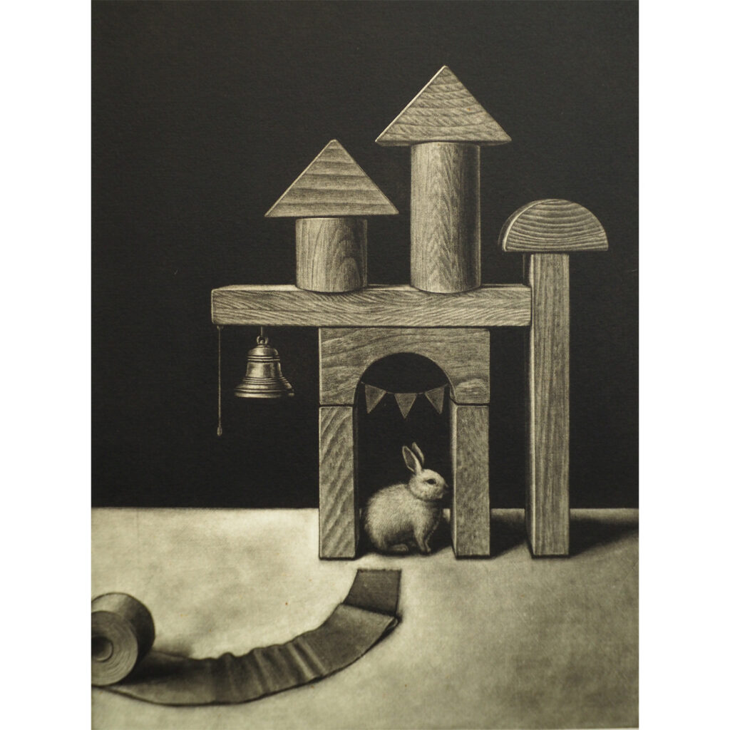 主に銅版画(メゾチント技法)を用いて、日常の中にある非日常を、ブラックユーモアを交え制作。近年は油彩画にも力を入れています。